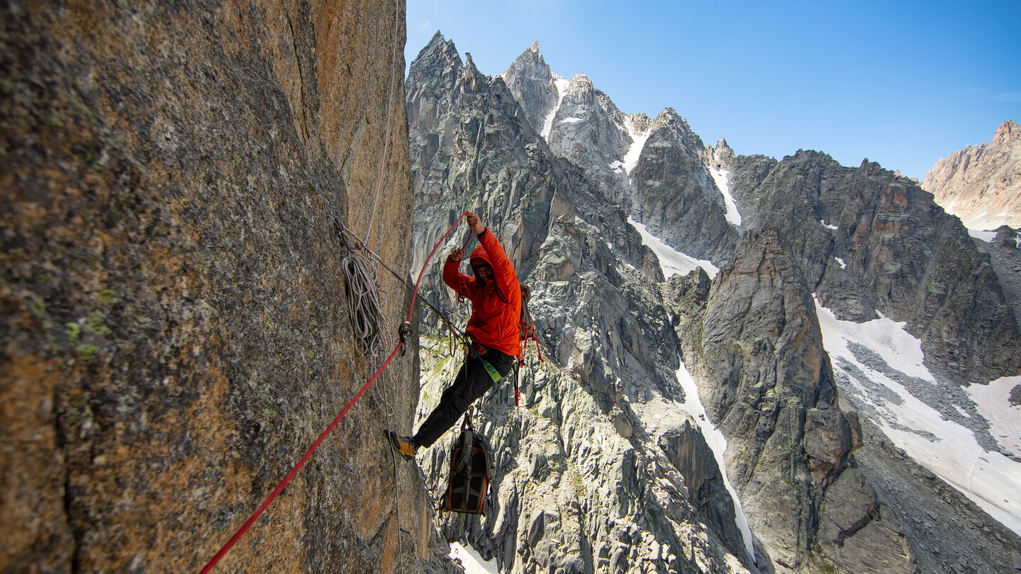 Early in the alpine season of 2024, all-round climber Freja Shannon suffers a serious fall on the North Face of Les Droites in the French Alps, resulting in a broken back. Despite a grim prognosis, Freja fights her way back with surprising speed—first on her feet, then on the rock. Joined by her climbing partner Ariane Moreau, Freja attempts to ascend Ave Ceasar, a pristine 7c trad route on the spectacular Petit Clocher du Portalet (2,623 m) in the Swiss Alps.